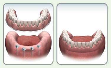 Fixed dentures, also called implant dentures, are anchored by dental implants. As few as four dental implants may be needed to secure the denture in place, greatly increasing the success rate and satisfaction of the denture. Ask your doctor if fixed dentures are an option for you.